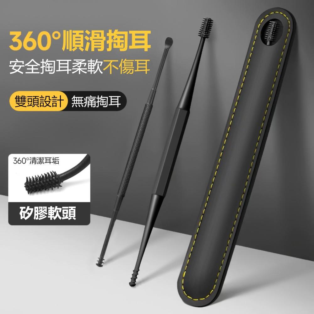 『熊愛貝百貨』矽膠材質挖耳勺套裝雙頭掏耳勺軟頭螺旋挖耳朵工具附收納套