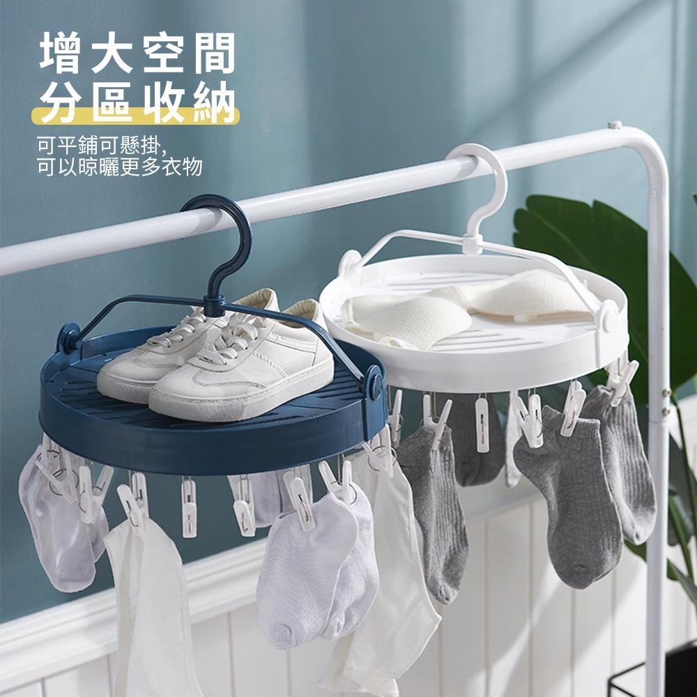 『熊愛貝百貨』加大版360度圓盤晾曬18夾晾衣夾 可折疊晾鞋盤好收納