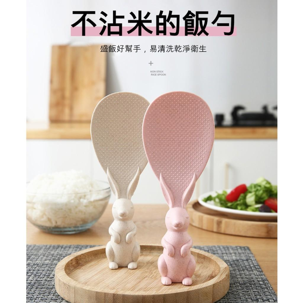 『熊愛貝百貨』小麥秸稈兔子飯勺 不易黏米可站立式家用盛飯勺
