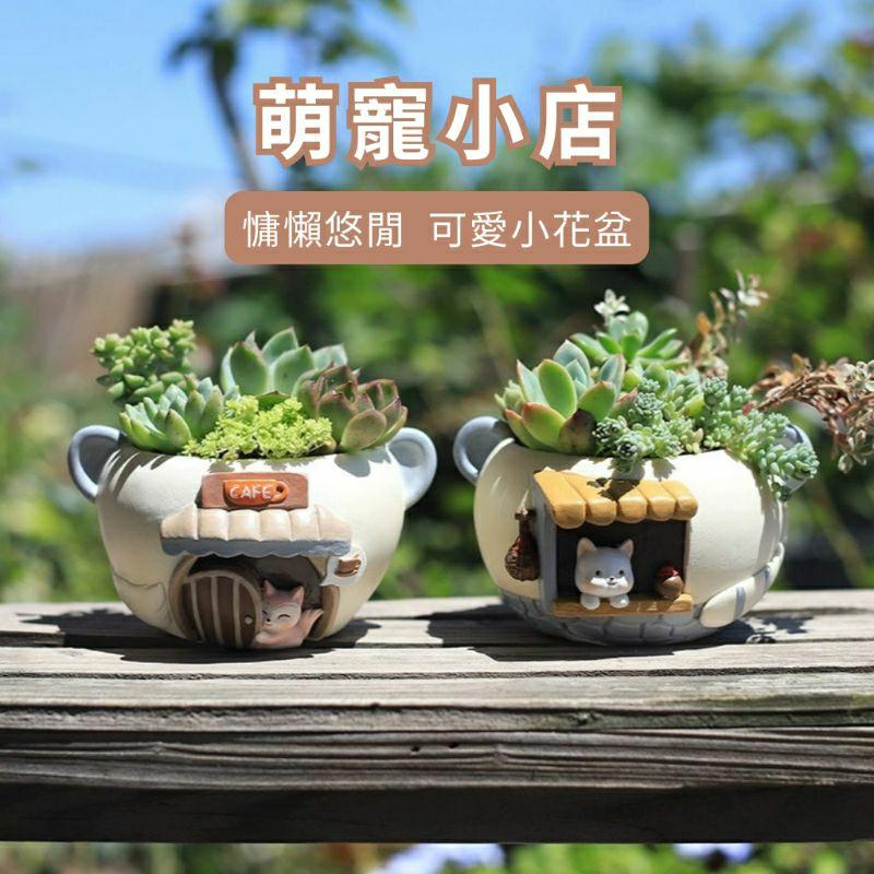 屋哇🎂現貨 創意花盆 多肉花盆 造型花盆 筆筒 花盆 造型筆筒 狐狸 咖啡館 貓咪 小酒館