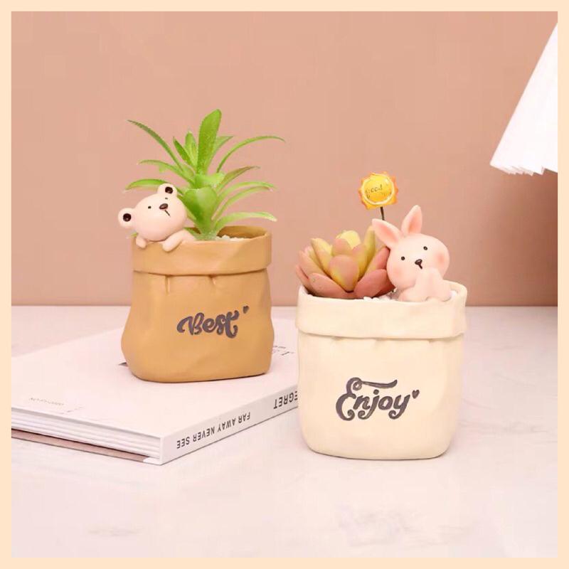 [屋哇🎉台灣現貨]小熊 兔子 貓咪 狗狗 貓 熊 多肉 紙袋 貓 花盆