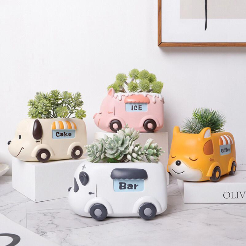 限量新品🪴小豬 柯基 熊貓 狗狗 行動餐車 露營車 汽車 創意 花盆