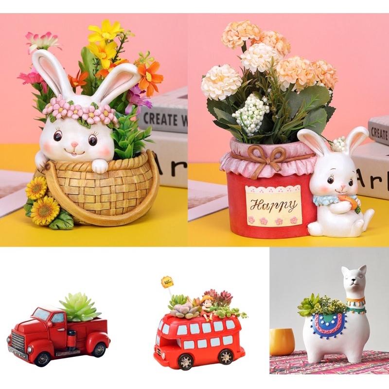 【屋哇🔥台灣現貨】兔 紅色 巴士 卡車 羊駝 兔子 竹編 陶瓷 花盆 花器 器皿 盆栽 多肉 觀葉 盆 器