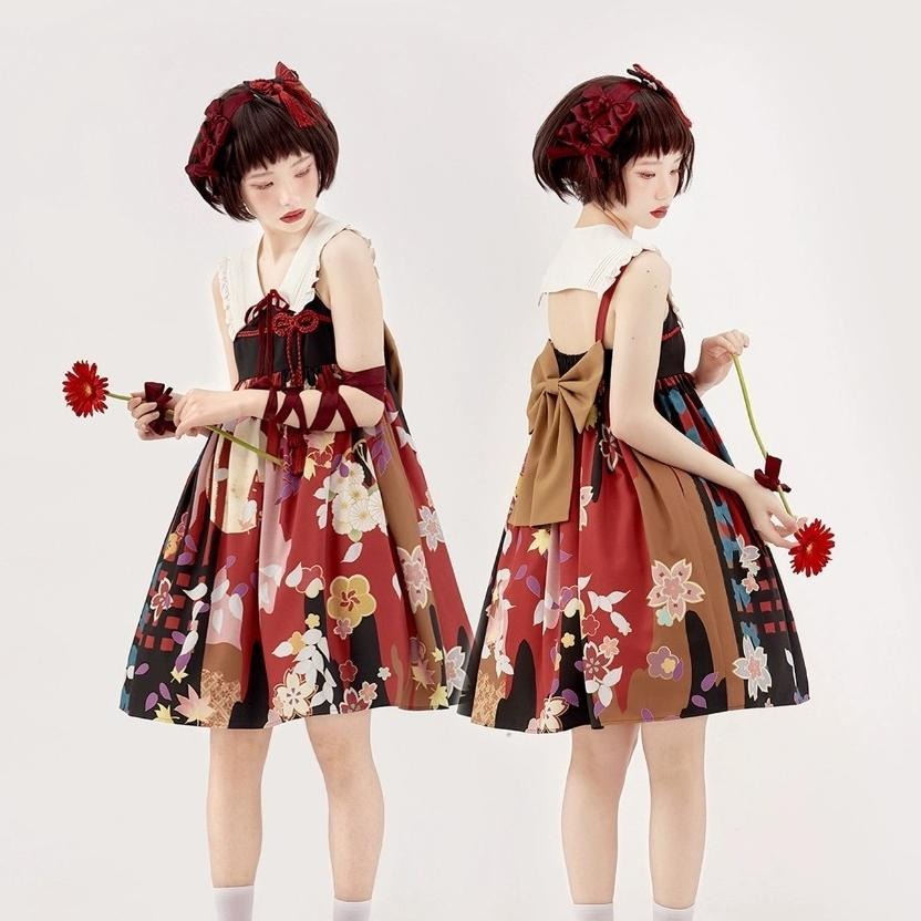 假領+吊帶洋裝,(背後大蝴蝶結可拆),9成新