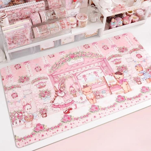 少女 書桌 桌墊 桌布 滑鼠墊 粉色 小熊 可愛 公主 房間 lolita 地雷系 蕾絲 墊板