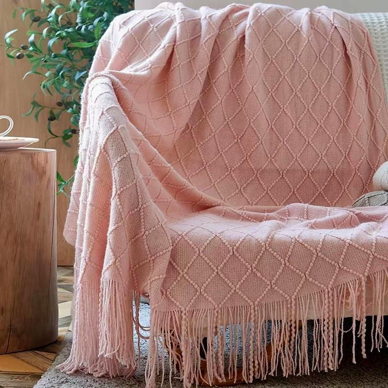 藕粉色流蘇針織毯 尺寸:125x170cm 全新