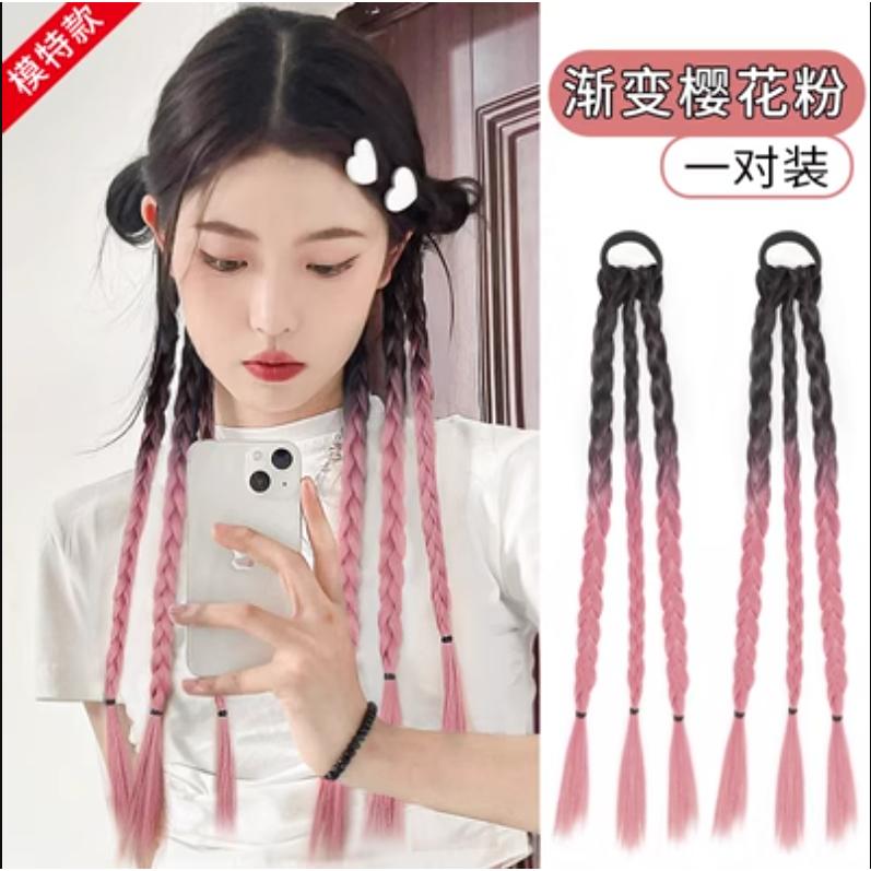 【現貨】甜酷女孩 假髮辮子 麻花辮 辣妹 拳擊辮子 假髮片 高馬尾 假髮 棕黑漸變櫻花粉 一對入