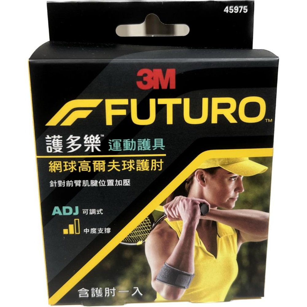 品名:3M 護多樂 網球高爾夫球護肘 一入 【產品說明】 容易穿脫,左右手皆適用 本商品屬個人用品,一經拆封使用,恕無法辦理退貨 型號:45975 內容物:護肘 材質:聚氨酯發泡材、聚酯纖維、尼龍 規格:單一尺寸可調式 手臂圍 17.8~35.6cm 衛署醫字號:非醫療產品 有效期間:10年 產品尺寸:10x4x13 CM 產品重量:100 G 產地:墨西哥 【販售藥商藥局資訊】 藥商許可執照:北市衛藥局(松)字第5901013862號 藥商公司名稱:禾宜藥局 藥商地址:台北市松山區八德路三段12巷51弄16號 藥商電話:02-2578-0236 【訂購須知】 ✔️週一至週日17點結單 ✔️商品有現貨:24小時內會出貨 ✔️商品無現貨:備貨日約3-7天,不包含例假日 ✔️急需可前來門市購買,門市營業時間為週一至週日9:00-22:00 ✔️為保護顧客權益,收到商品請全程錄影拆封 ✔️退換商品必須是全新狀態(商品包裝、內容物皆完整),否則恕不接受退換貨 ✔️因超商限重五公斤,若需大量訂購請選宅配或透過「聊聊」詢問 ✔️商品與實體門市同步販售,庫存可能有落差,下單前可先詢問是否有現貨