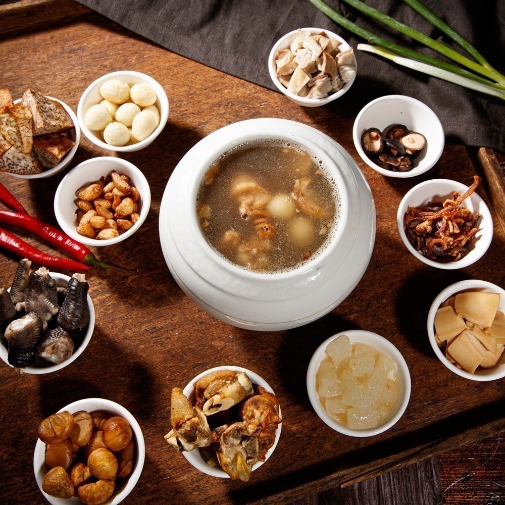 內容物:芋頭、鳥蛋、腳筋、豬肚、雞爪、香菇、鮑魚片、栗子、魷魚、蒜頭