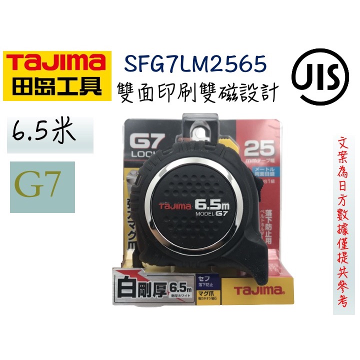 TAJIMA 田島 SFG7LM2565 G7系列 附磁 6.5米*25mm 包膠捲尺