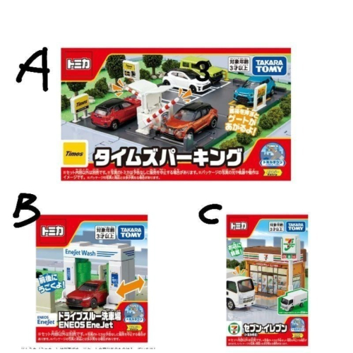 tomica 2022 3月新品 新款場景 A款 times perking 停車場 B款 洗車場 C款 711場景附一台車