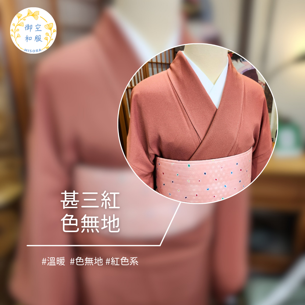 甚三紅可以直接google色票看顏色!這件很好看,縮緬無地,完全沒有暗紋的色無地。歡迎收藏🫶