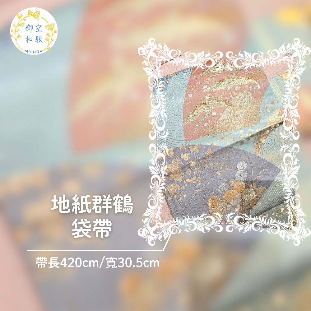 這條通年可以用✨️上面的花花有梅、楓、菊、蔦葉等,加上金線交織成的鶴,非常推薦茶道同學可以帶這條🫶