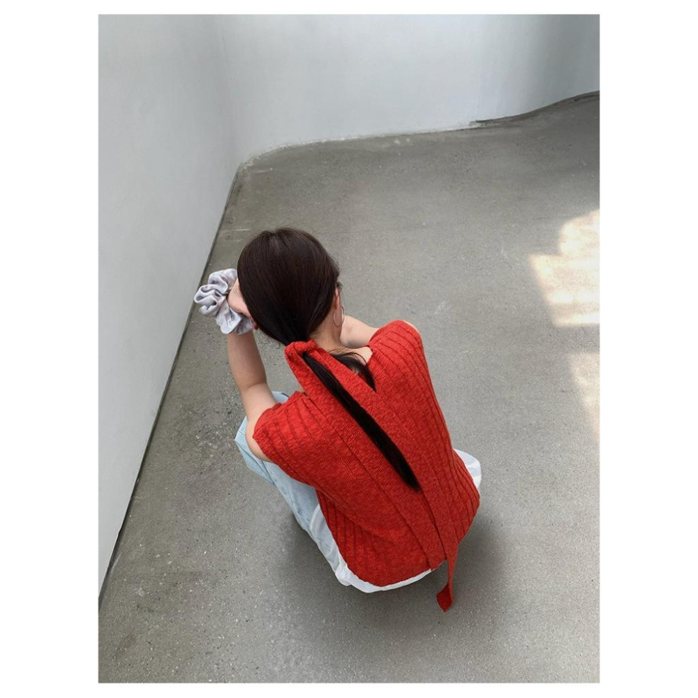 533 | 現貨 過年紅色韓國綁帶坑條V領針織背心馬甲附腰帶