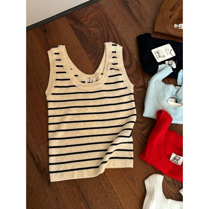 533| 現貨 秋冬韓國大U領遮副乳羊毛針織背心素面條紋