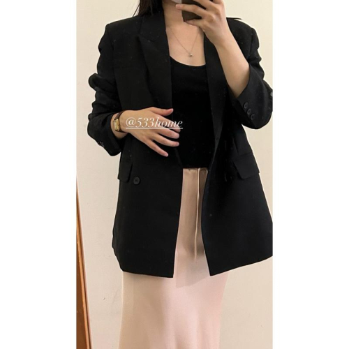 533|現貨 米白黑色歐美雙排釦寬鬆感中長款西裝外套