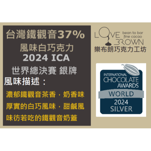 榮獲2024ICA世界巧克力大賽 世界總決賽 (World Finals) 風味白巧克力項目【銀牌】