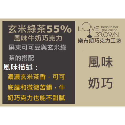 成分:可可豆、砂糖、可可脂、奶粉、玄米綠茶