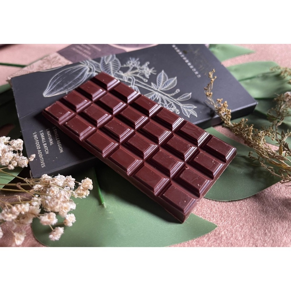 使用屏東單一莊園特殊發酵(桂花發酵)可可豆以Bean to bar工序製作,成分僅可可和糖,不含食品添加物。