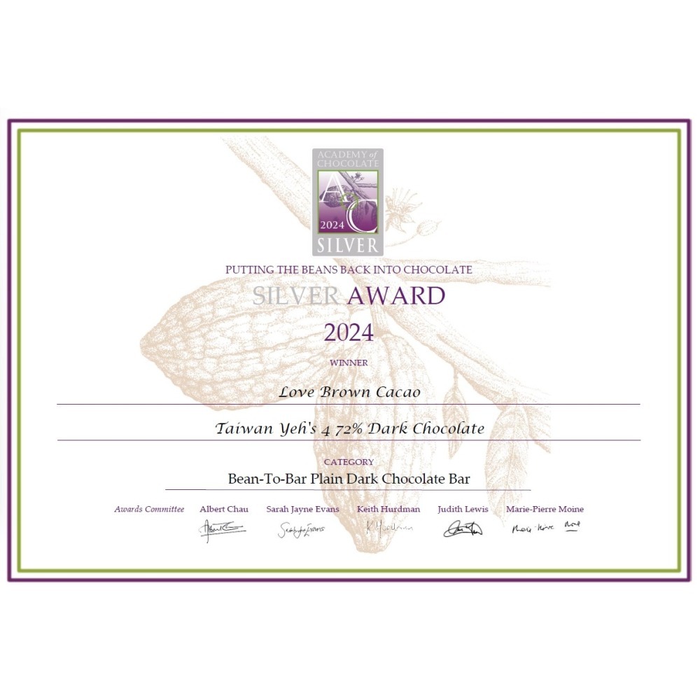 榮獲2024 Academy of Chocolate 原味Bean to bar巧克力項目 銀牌