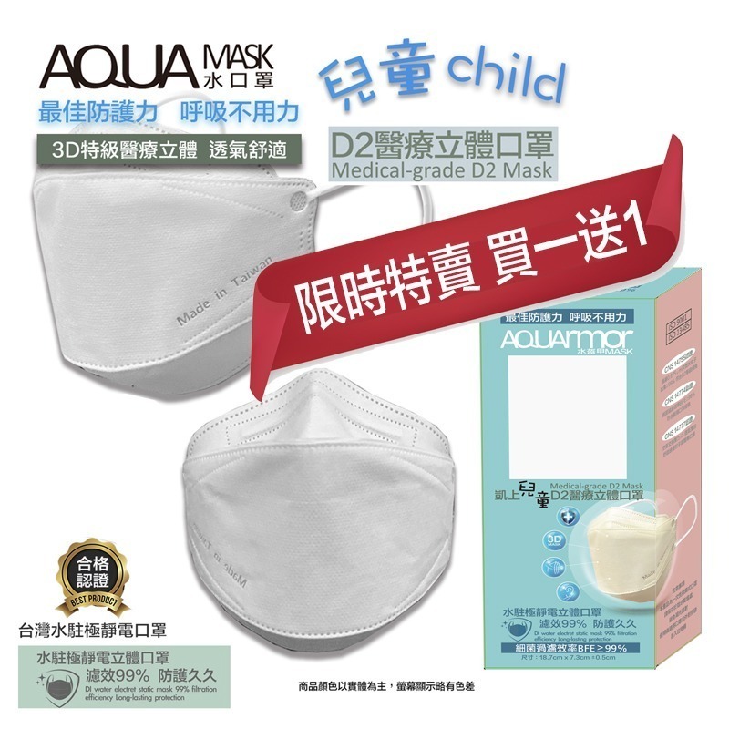 📣📣AQUA D2台灣製醫療級立體口罩兒童10入/限時特惠買一送一