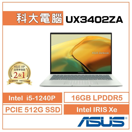 🔥科大電腦購買須知: ●賣場商品之詳細規格請依照官網為主,以避免期間原廠改版,規格有落差。 ●猶豫期非試用期,避免爭議,拆封時請"全程錄影"以確保自身權益! ●新品如有瑕疵,請保持本體完整、保留產品外盒及完整配件(請勿在產品上黏貼膠帶或者塗鴉),使用原包裝回復原狀,收納好產品,以便後續辦理退換貨流程。 ●產品無瑕疵、無故障,但已拆封使用,之後因個人因素、喜好之原因而想退貨,會視情況酌收整新費用。 ●賣場皆含稅附發票,由蝦皮代開電子發票,如需"開立細節或統編"、"有發票問題",請電話詢問"蝦皮客服電話 (02)6636-6559"。 ●宅配出貨時間:週一 ~ 週五(周末及國定假日無法送貨),寄送僅限台灣本島,離島地區請先聊聊詢問。 ●售出產品皆由電子發票做保固憑證。 ●商品出貨後若想退貨勿拆封請直接拒收退回。 🔥升級改裝必看: ●下單即同意拆封升級:會由專業工程師,為您安裝升級的硬體設備。 ●軟體系統:軟體以原廠隨附的軟體為主,作業系統為原機型隨附, 無OFFICE文書軟體(選購)。 ●保固:仍有原廠主機保固,僅針對升級的硬體原廠不做保固(由硬體廠商保固) ,軟體不提供保固。 ●加裝硬碟以一年保固為限,超過可自行到硬碟原廠處理。(加裝配件僅台灣本地保固) ●如有客製化規格需求,請先聊聊詢問。 🔥詳細規格: ●品牌 ASUS華碩 ●型號 UX3402ZA-0132E1240P ●螢幕尺寸(吋) 14.0吋 ●螢幕觸控 無 ●螢幕類型 IPS ●螢幕解析度類型 2.2K ●螢幕解析度 2560 x 1600 ●顏色 綠色系 ●中央處理器品牌 Intel ●CPU類型 i5 ●中央處理器型號 Core™ i5-1240P Processor 1.7 GHz ●記憶體類型 LPDDR5 ●記憶體容量 16G(on board) ●記憶體插槽 無(on board) ●記憶體最高支援容量 16G ●硬碟類型 固態硬碟 ●2.5吋傳統硬碟容量 無 ●2.5吋傳統硬碟轉數 無 ●固態硬碟 SSD/eMMC 512GB ●顯示卡類型 內顯 ●顯示晶片卡型號 Intel Iris Xe Graphics ●顯示卡記憶體類型 無 ●顯示卡記憶體容量(GB) 無 ●光碟機 無 ●I/O連接埠 1x HDMI 2.0b / 1x 3.5mm Combo Audio Jack ●其他連接埠 1x USB 3.2 Gen 2 Type-A / 2x Thunderbolt™ 4 ●讀卡機 Micro SD card reader ●網路攝影機 720p HD 攝影機 ●重量(kg) 1.39 ●無線網路 Wi-Fi 6E(802.11ax) ●藍牙 5.2 ●作業系統 Win 11 home ●指紋辨識 有指紋辨識 ●電池容量(cell/mAh.) 75WHrs ●定位 輕薄筆電, 效能筆電, Intel EVO認證筆電 ●保固 兩年保固 ●標準配件 變壓器+電源線, 內袋 ●NCC認證碼 CCAH18LP3410T5