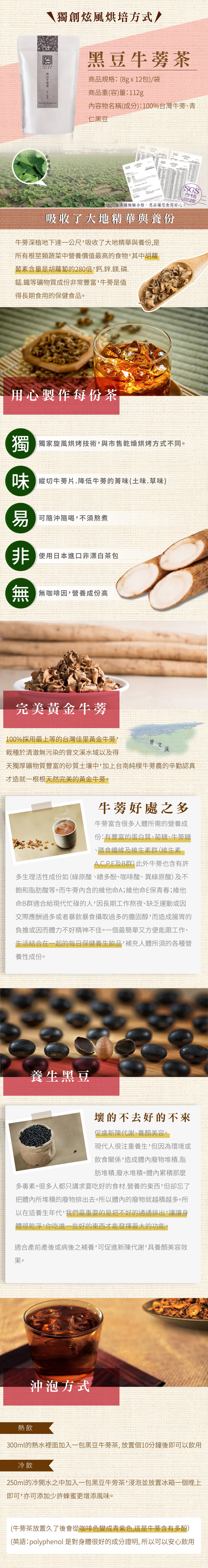 5.內容物名稱(成分):100%台灣牛蒡、青仁黑豆
