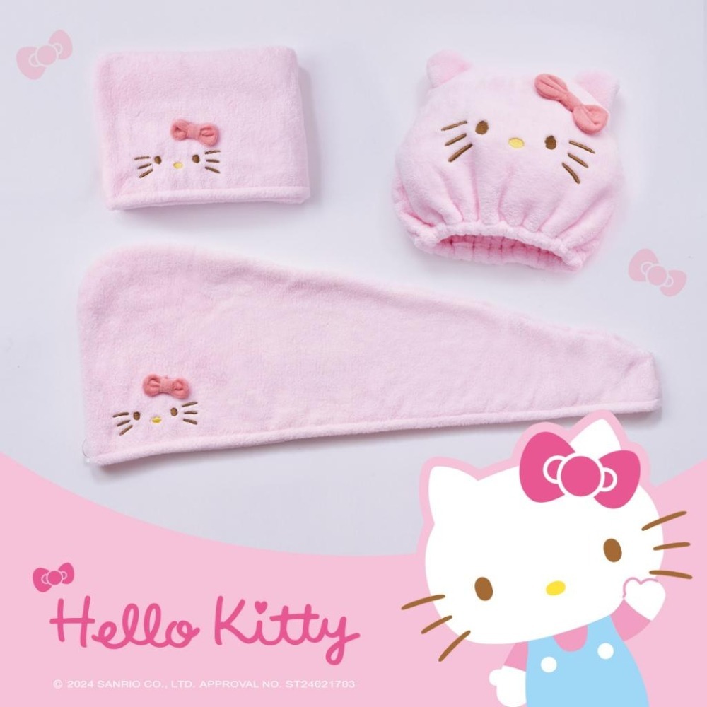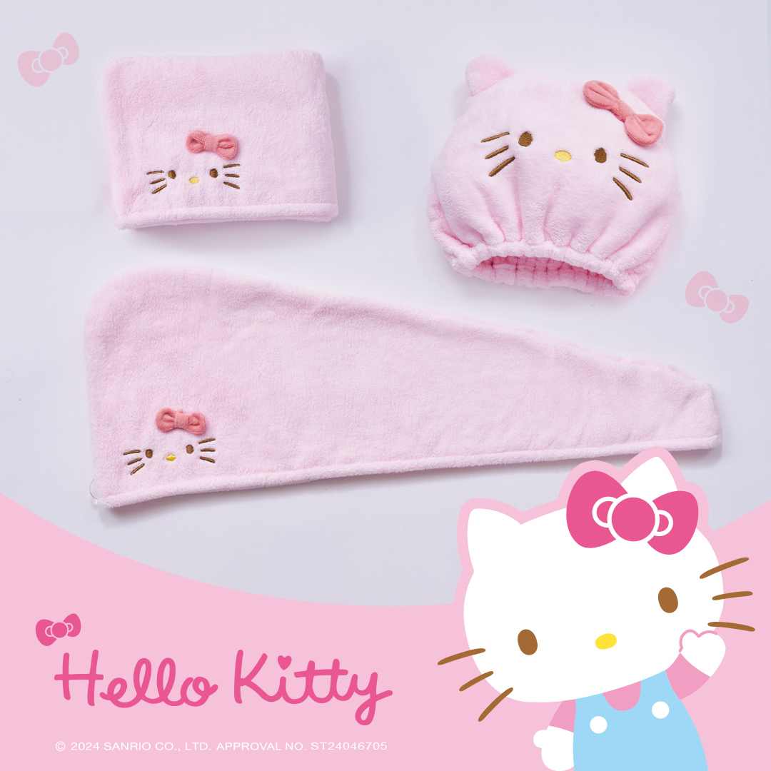 Sanrio 三麗鷗 凱蒂貓乾髮帽 Kitty造型乾髮帽 吸水速乾 擦髮毛巾【旺達棉品】【KT-DT001】