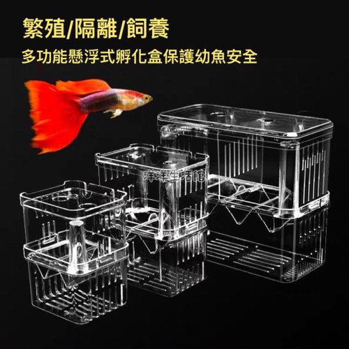 名稱:懸浮式多功能隔離盒(有附吸盤) 材質:PS透白 尺寸: 小👉長8寬7高10公分 中👉長10寬7高13公分 大👉長14.5寬8.5高14.5公分 特性:1.可作為卵胎生魚隻如鬥魚吧、孔雀、鏘魚等產卵箱,可防止成魚攻擊,提高稚魚存活率 2.提供攻擊性魚隻、受傷魚隻、小型魚、蝦、海水小丑魚等隔離用 3.自浮式與貼壁設計,雙層組合不佔空間