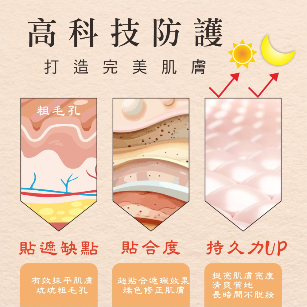 能有效打造保濕輕薄的肌膚,滑順潤澤、打造無暇水嫩肌膚,