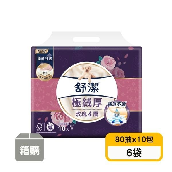 【舒潔】極絨厚4層抽取衛生紙-大馬士革玫瑰香氛(80抽x10包x6袋)