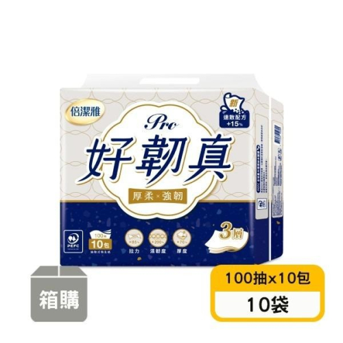 【倍潔雅】好韌真Pro3層抽取式衛生紙(100抽x10包x10袋)