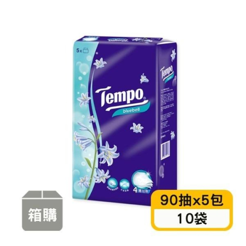 【Tempo】4層輕巧包面紙-藍風鈴(90抽x5包x10袋)