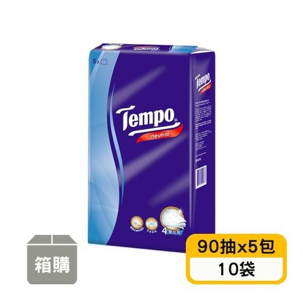 【Tempo】4層輕巧包面紙-無香(90抽x5包x10袋)
