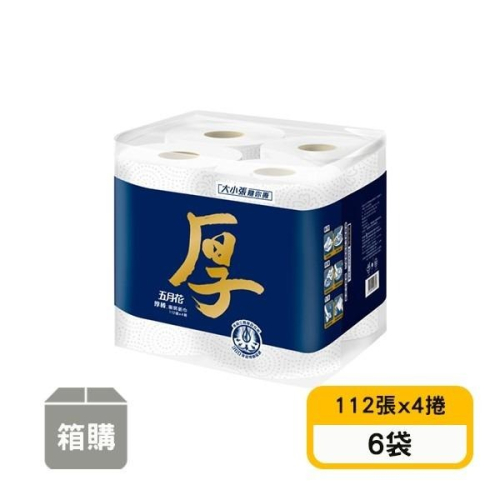 【五月花】厚棒3層廚房紙巾-大小張隨你撕(112張x4捲x6袋)