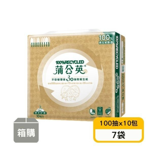 【蒲公英】綠茶3層環保抽取衛生紙(100抽x10包x7袋)