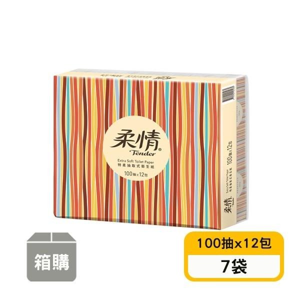 【柔情】特柔抽取式衛生紙-手繪條紋版(100抽x12包x7袋)
