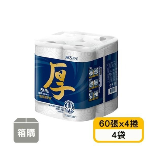 【五月花】厚棒3層廚房紙巾-超大尺寸(60張x4捲x4袋)
