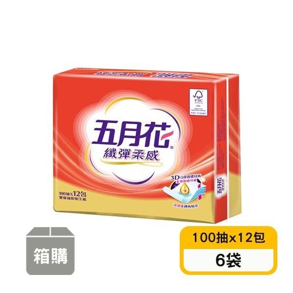 【五月花】纖彈柔感抽取式衛生紙(100抽x12包x6袋)