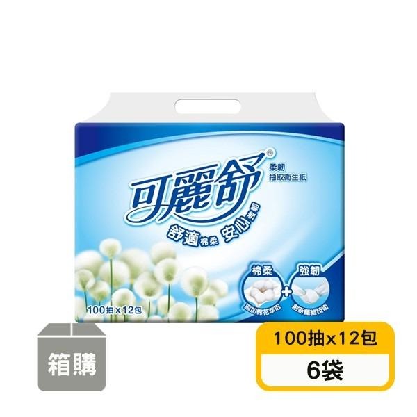 【可麗舒】柔韌抽取式衛生紙(100抽x12包x6袋)