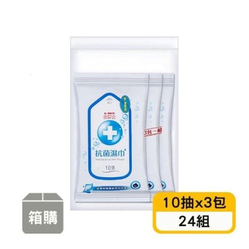 【白博士】抗菌濕巾(10抽x3包x24組)
