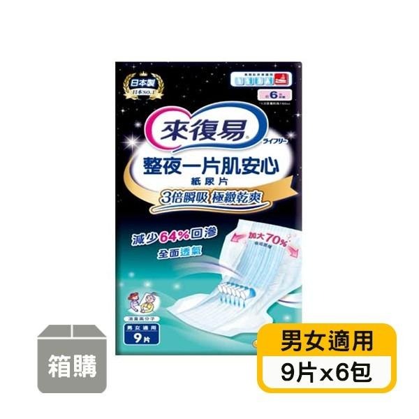 【來復易】整夜一片肌安心尿片式尿片(9片x6包)