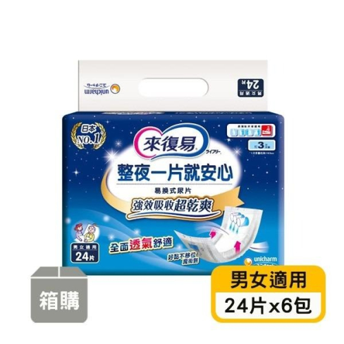 【來復易】整夜一片就安心紙尿片(24片x6包)