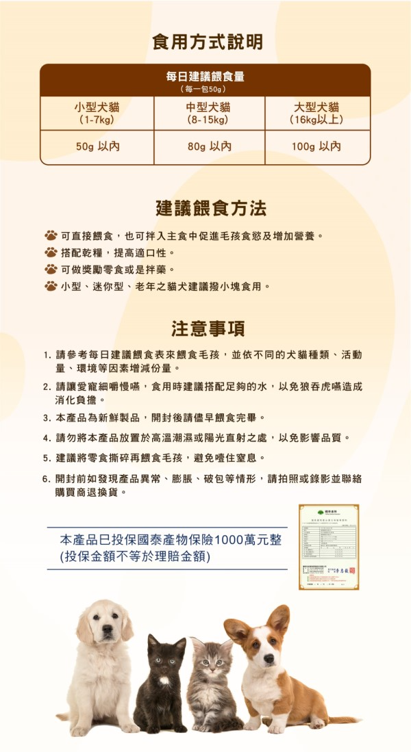 ☆ 可直接餵食,也可拌入主食中促進毛孩食慾及增加營養
