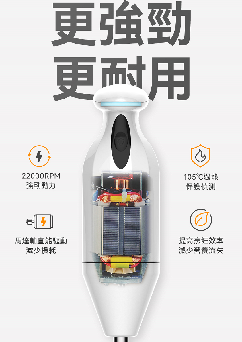 材質:主機外觀-ABS 材質、刀頭-304食品級不鏽鋼、