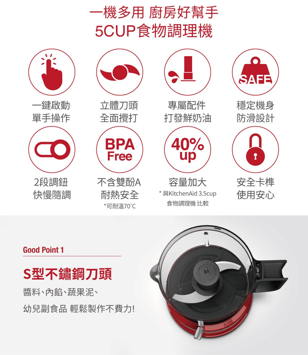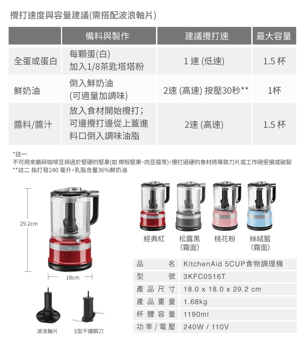 內容物:主機、工作碗、上蓋、多用途S型不鏽鋼刀、波浪軸片