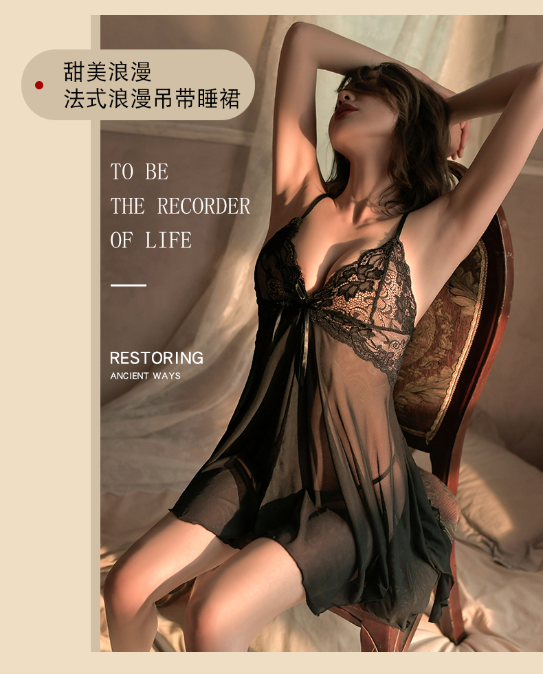 性感吊帶蕾絲透明睡衣 情趣內衣 情趣睡衣
