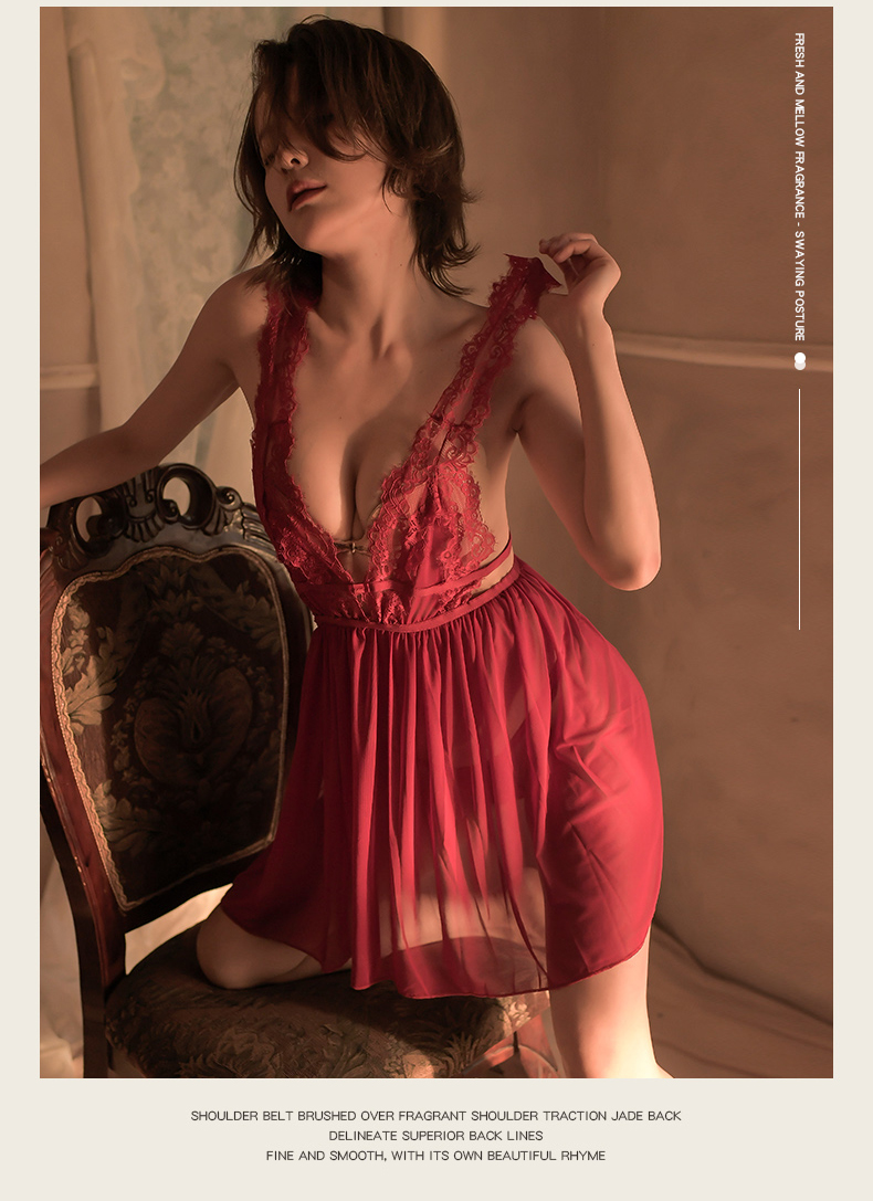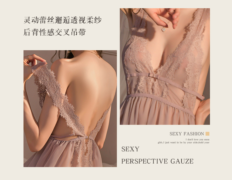 柔紗蕾絲吊帶透視性感睡衣裙 情趣內衣 情趣睡衣