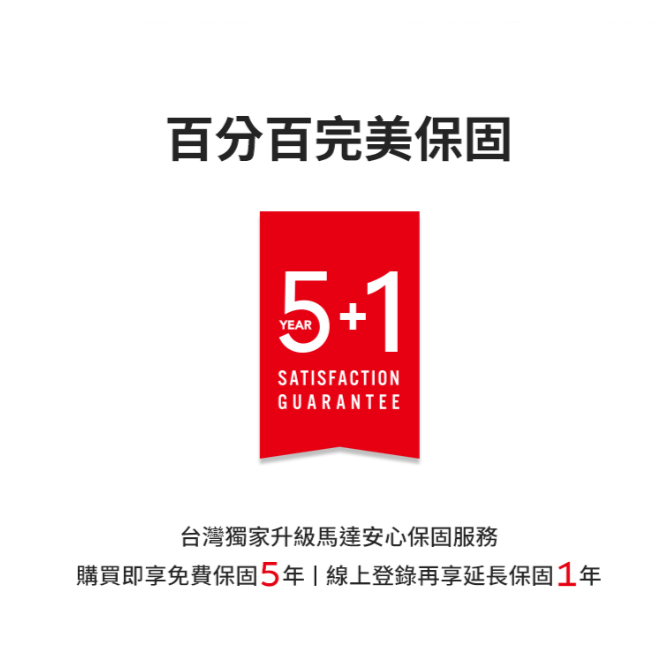 保固: 由原廠提供保固服務,自購買日算起正常使用下馬達5年保固,上網登錄加1年