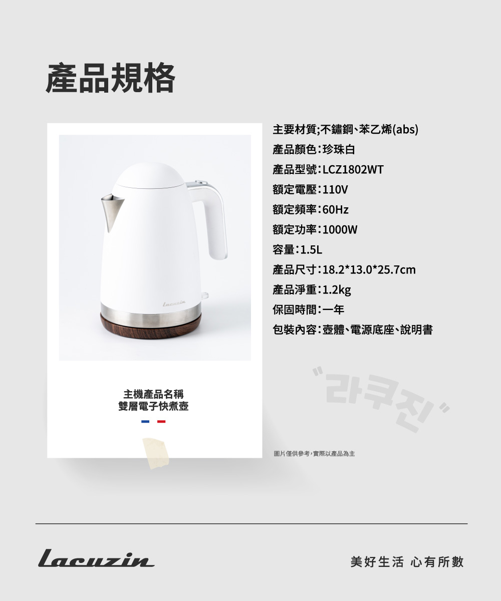 包裝內含:壺體 x1、電源底座 x1、說明書 x1